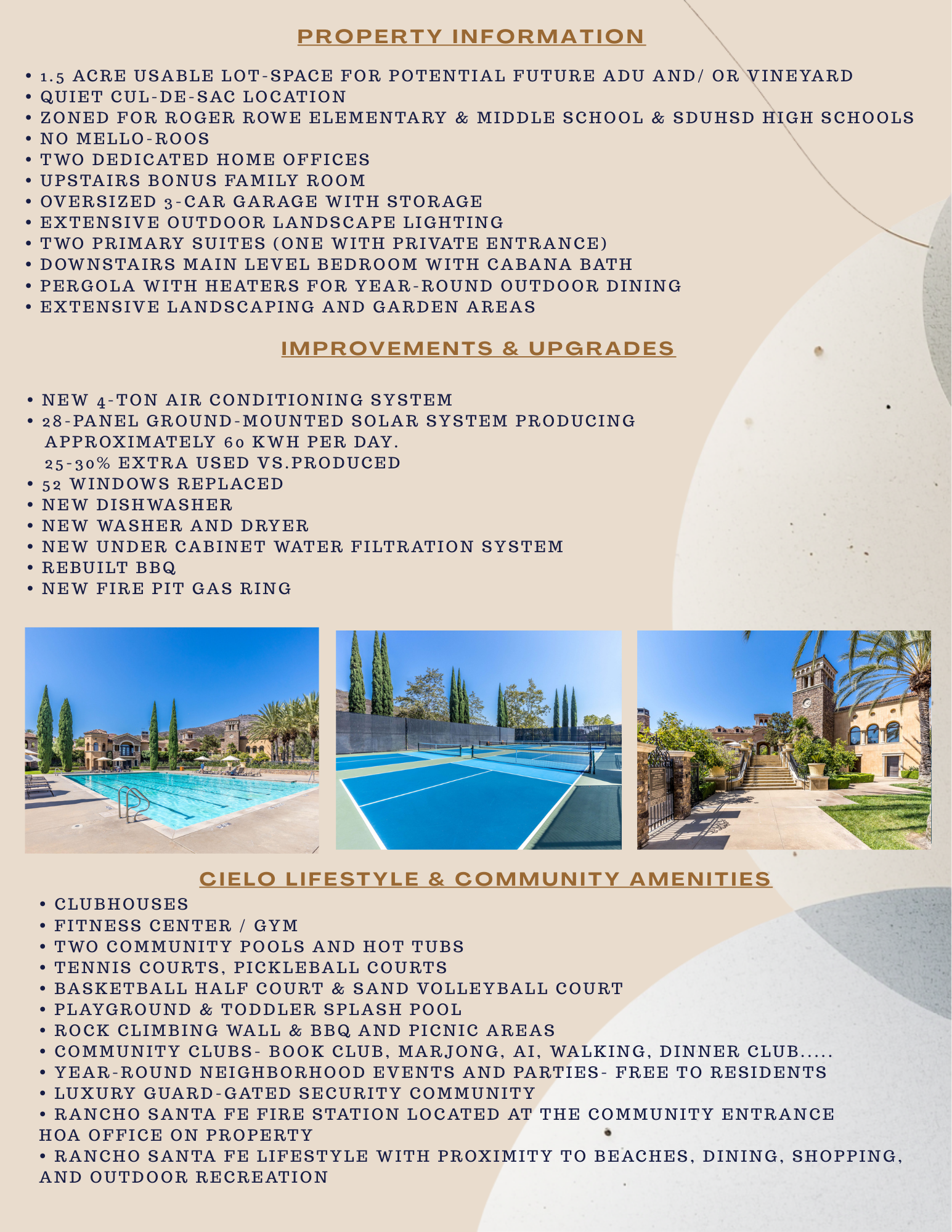 Families will appreciate zoning for the top-rated R. Roger Rowe School and San Dieguito School District, ensuring access to excellent education. Beyond the community, Rancho Santa Fe offers a lifestyle like no other, blending small-town charm with proximity to world-class dining, shopping, and recreational opportunities.